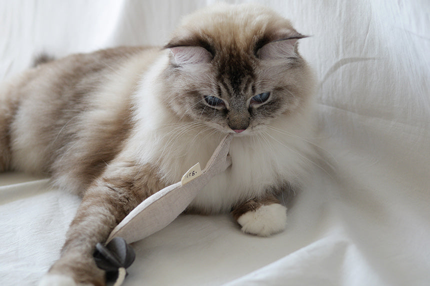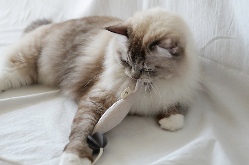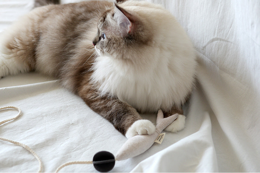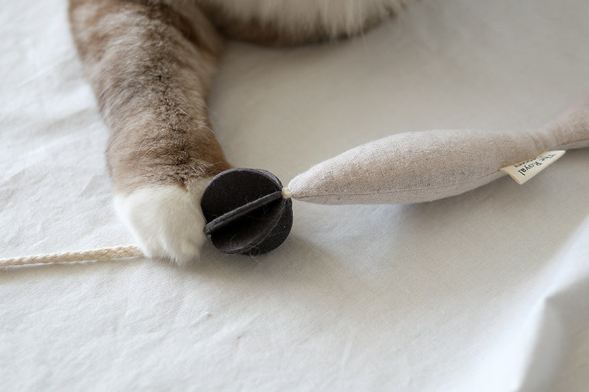 Ready for fishing season? This year we're bringing the big catch home for some special bonding time with your favorite feline. Crafted with natural linen, cotton and birch wood, our fun Fish and Chews is the ultimate teaser toy for the most important member of the family.
