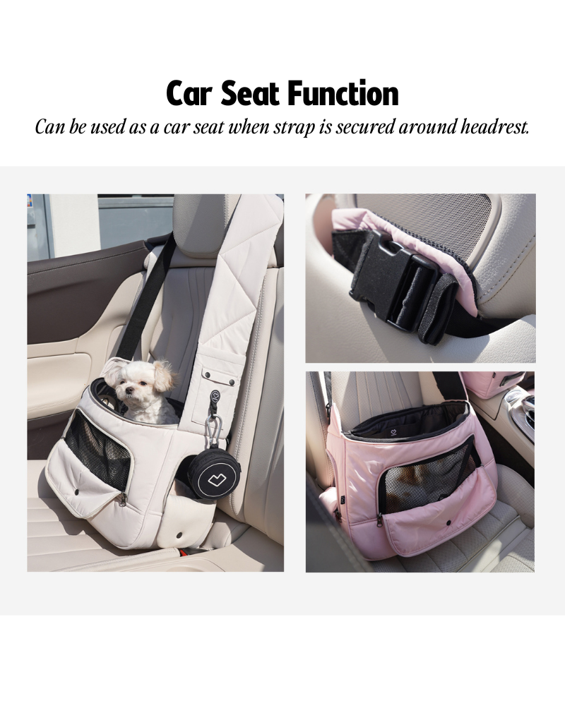 Sized to fit airlines (sizes Small + Medium), this bag also offers functionality as a car seat when the strap is secured around the car seat headrest.